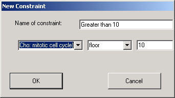 The above shows the dialog that is used to define a constraint that sets a floor value on the specified experiment, so that all values that are less than ten are automatically set to 10.