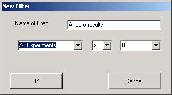 The filter is defined using matching rules, in the case shown above the filter defined is such that only genes that have intensities in all the experiments greater than zero will be used.