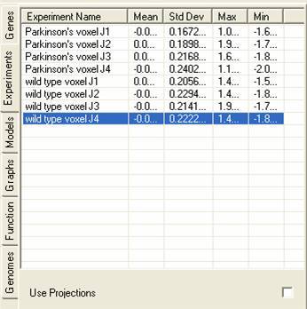 By selecting the Use Projections check box information about projections that have been derived from the experiments will be shown. The genes can then be viewed using the projection vectors through any of the views or can be analysed using any of the clustering tools.