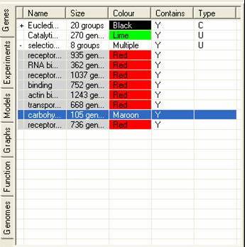 By selecting the popup menu groups of genes can be removed, merged, renamed.