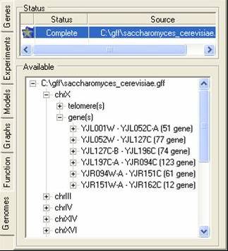 - Load Selection/Models/Graphs/Functions/Locations: Allows for loading of categories of genes or models that have been defined using a different data set, or graphs of genes, or associated functions(as ontologies in OBO format), or genome information (in GFF version 1or 3, or PLS format).