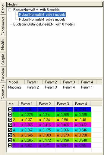 The bottom pane shows details about each of the models, depending on the model that has been used these parameters may change depending on the distributions of data points within each experiment.