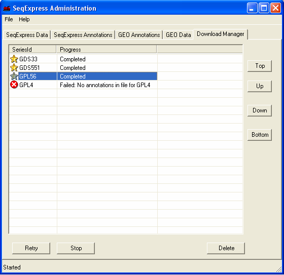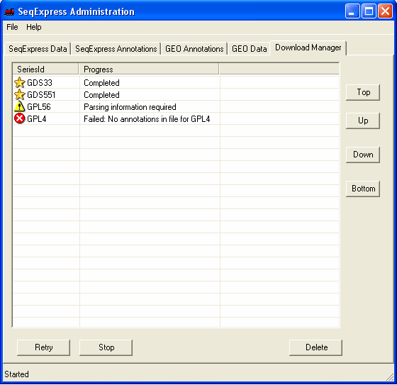 Download Manager: what files are currently being retrieved, parsed or loaded into SeqExpress