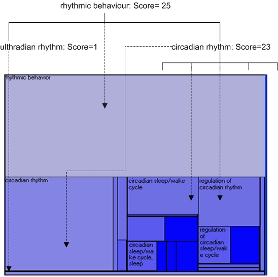 a TreeMap for examination of scores associated with concepts (e.g. number of assigned instances);
