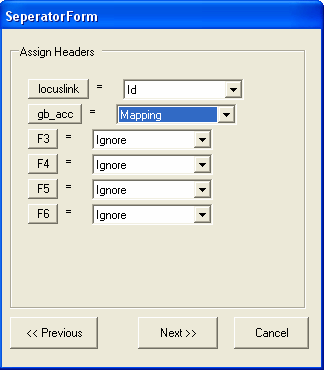 Now we specify that the first column contains IDs and the second column contains annotation mappings. Additionally textual descriptions for the IDs (in this case locuslink) could also be imported. Select Next to continue.