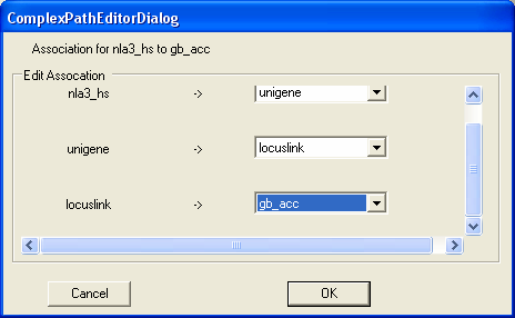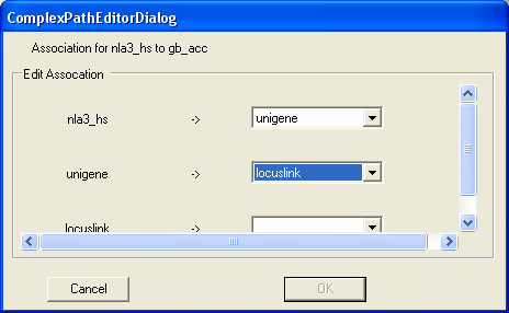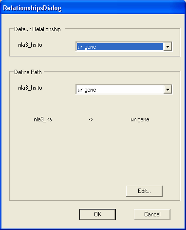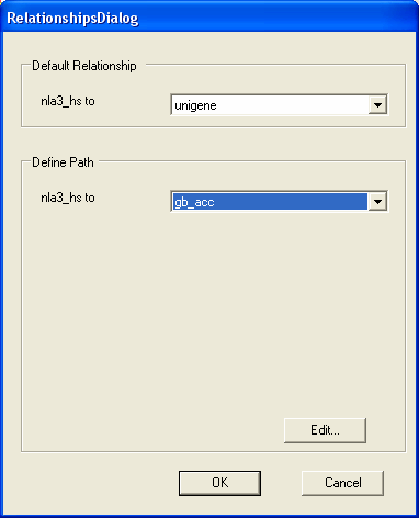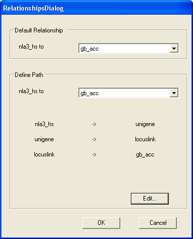 Then we wish to navigate from locuslink entries to genbank identifiers. As the relationship is now defined you should select the OK button.