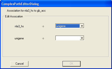 To define the SAGE to Genbank mapping you should first select the gb_acc annotation from the define path box. Then select the Edit button (as we are now going to edit how the genbank identifiers are looked up for specific SAGE tags).