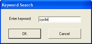 The keyword search is for a substring, so in the above query all genes that contain 'cyclin' will be returned.