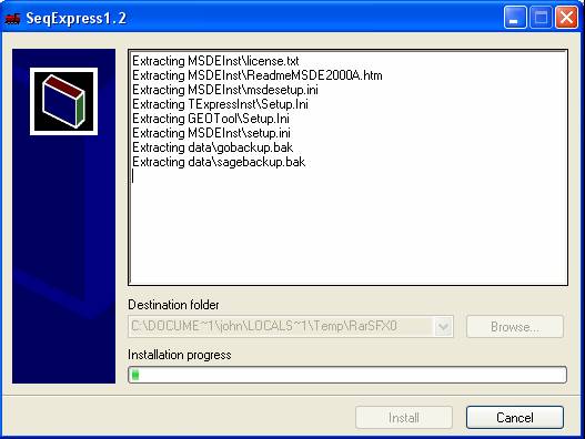 Run the seqexpress server installation file to start the installation The distribution will unpack itself and once complete the installation process