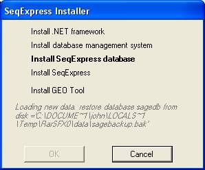 Once the database is install the SeqExpress database will be populated, this will take a few minutes.