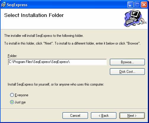 Now decide where you wish to install SeqExpress, and then select next.